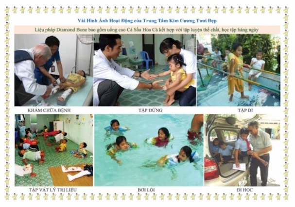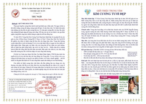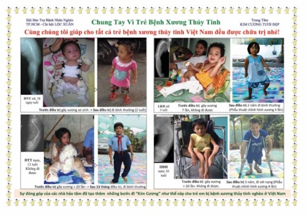 骨形成不全症は日本でも難病指定されている病気で、2.3万に一人の割合と言われている先天性の病気です。骨がもろく、骨折しやすいため、生涯を通じての治療が必要と言われています。骨の変形のほか、歯の形成不全、難聴、成長障害、青色強膜などの症状を呈します。発生頻度に人種差は無いとされているものの、遺伝子の異常のため、枯れ葉剤の影響が今だ残るベトナムには多いような気がしました。